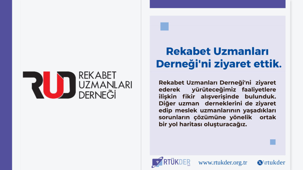 Rekabet Uzmanları Derneği’ni ziyaret ederek yürüteceğimiz faaliyetlere ilişkin fikir alışverişinde bulunduk. Diğer uzman derneklerini de ziyaret edip meslek uzmanlarının yaşadıkları sorunların çözümüne yönelik ortak bir yol haritası oluşturacağız.